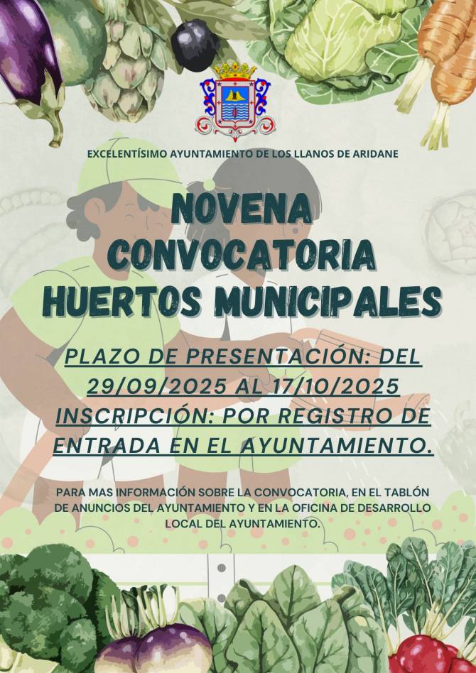 El Ayuntamiento de Los Llanos de Aridane abre el plazo de presentación de solicitudes para la novena convocatoria de los huertos municipales, que se desarrollará hasta el 17 de octubre de 2025.
