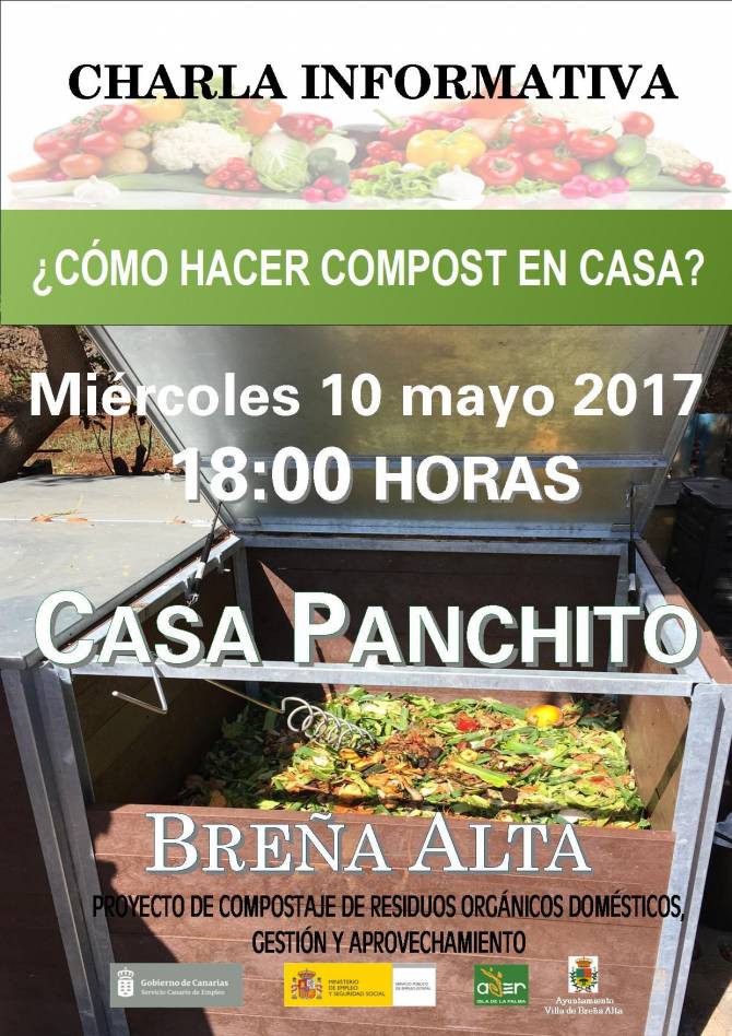 La Villa de Breña Alta impulsa la elaboración de compost en los hogares. El municipio, en el marco del Proyecto de compostaje de residuos orgánicos domésticos, gestión y aprovechamiento, acogerá dos charlas informativas. La primera de ellas tiene lugar este miércoles, a partir de las 18:00 horas, en la Casa Panchito. La otra se impartirá el próximo viernes, en el mismo horario, en el local social de El Morro, en el barrio de San Isidro.