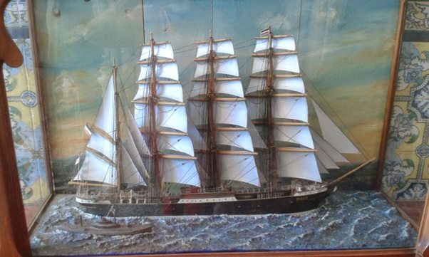—Bien. Escuche Vd. Una noche de noviembre del año pasado me levanté a media noche para calentar leche a mi marido que estaba muy malo; y por casualidad vi por la ventana a la barca Pamir. Y ¡me asusté! De repente apagó la luz blanca que se tiene puesta todas las noches y enseguida apareció una luz verde en el tope del palo mayor. Luego apagó y en el mismo sitio se veía una luz encarnada. Ya no podía apartar la mirada de tan misteriosos sucesos y atiesada miraba a la barca. Apagó esta luz también y ahora vi una cosa oscura flotando delante de la barca, una cosa alumbrada por dentro. ¡Era un sumergible! Flotaba y al costado del Pamir, donde está la escala real, se quedó inmóvil. Un hombre con farol encendido en la mano bajó la escalera y luego subió otra vez. Seguramente habrá recibido al comandante del submarino.