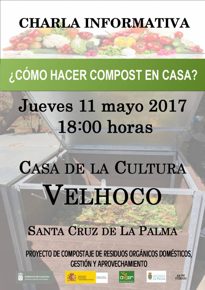 La Casa de la Cultura del barrio de Velhoco acoge este jueves, a partir de las 18:00 horas una nueva charla informativa sobre la elaboración de compost en el hogar a partir de los residuos orgánicos. El técnico de Asociación para el Desarrollo Rural de La Palma (ADER), Andrés Rodríguez Martín será el encargado de trasladar la información a los vecinos, tal y como hiciera el pasado mes de marzo en el barrio de Mirca.