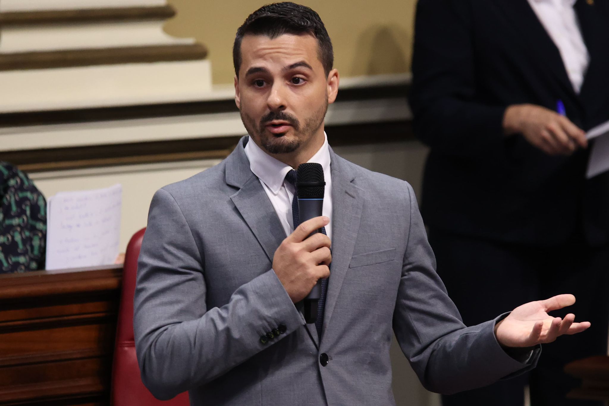 El presidente del Grupo Parlamentario Nacionalista Canario (CCa), David Toledo, ha preguntado en el Pleno del Parlamento por el grado real de cumplimiento del Estado con los compromisos adquiridos con Canarias.