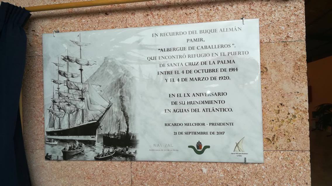 Al cumplirse el 60º aniversario de su hundimiento, el 21 de septiembre de 2017, a iniciativa del Club de Vela Latina Benahoare, la Autoridad Portuaria de Santa Cruz de Tenerife instaló en la entrada sur de la Estación Marítima del puerto de Santa Cruz de La Palma una placa conmemorativa con la que se cumple, de alguna manera, con lo que publicara el Diario de Avisos el día de su partida: “[…] esta Isla de La Palma conservará por muchos años el recuerdo grato del buque alemán, porque él era el albergue de caballeros [...]”.
