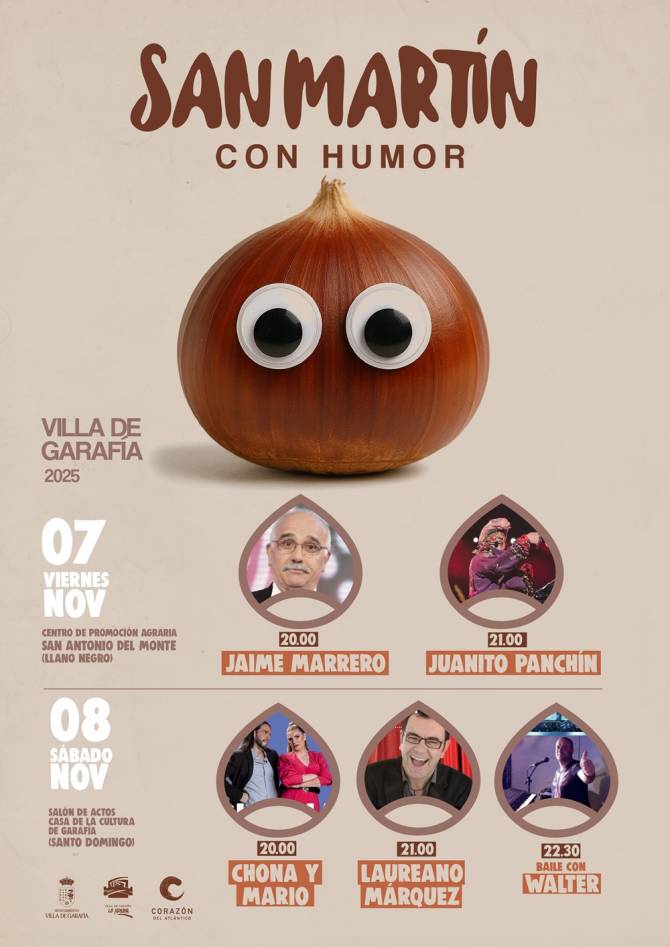 La Villa de Garafía se prepara para vivir el próximo fin de semana, viernes 7 y sábado 8 de noviembre, una nueva edición de "San Martín con Humor", una propuesta que une el espíritu festivo propio de estas fechas con el mejor humor canario. San Martín es una de las celebraciones populares en el municipio, una época que invita al encuentro y al disfrute.