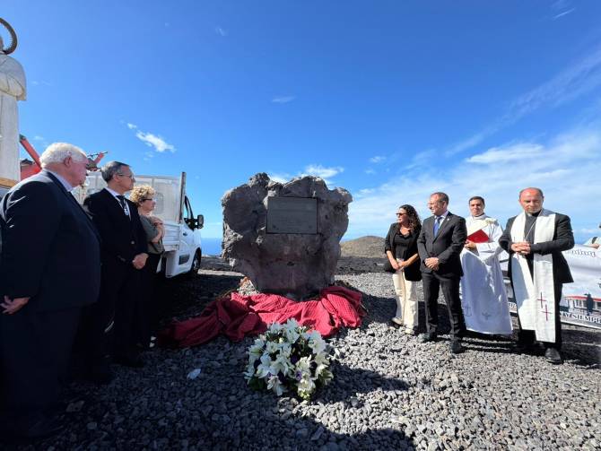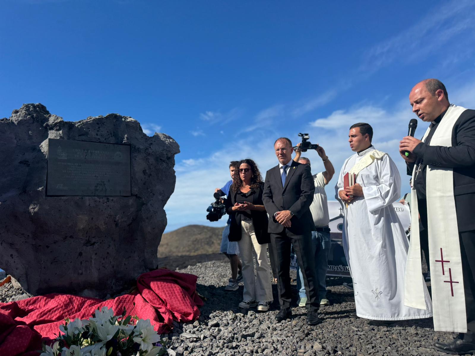 El acto se celebró en el solar de la antigua plaza de Todoque, con la visita de la Virgen de Las Nieves con motivo de su peregrinación por todos los municipios de la Isla. En su parada en este punto, se aprovechó la oportunidad para descubrir un monolito.