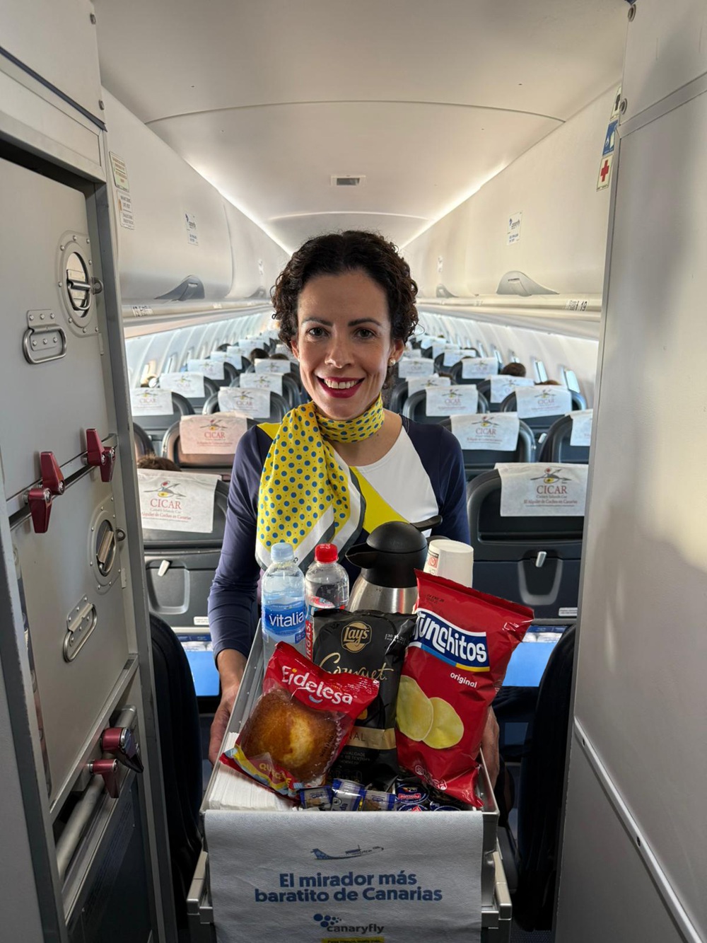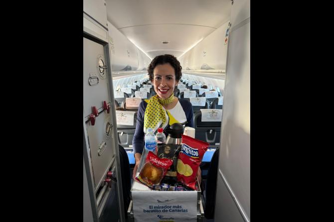 La directora de Marketing y Comunicación de Canaryfly, Cathaysa Santana, asegura que "teníamos claro que nuestro servicio de venta a bordo debía ir alineado con nuestros objetivos como compañía low cost, procurando que nuestros usuarios y usuarias paguen exclusivamente por aquello que necesitan y estableciendo unos precios asequibles".