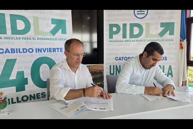 El presidente insular, Sergio Rodríguez, y el alcalde de Breña Baja, Borja Pérez, han firmado el convenio de colaboración entre las Administraciones a través del cual el Ayuntamiento recibirá cada año 565.702,87 euros para desarrollar esta infraestructura.
