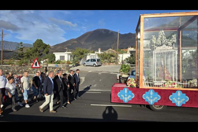 El presidente del Cabildo de La Palma, Sergio Rodríguez, participó del acto de recibimiento de la imagen de Nuestra Señora de Las Nieves a las puertas de su Real Santuario, culminando un histórico peregrinaje por los catorce municipios de la isla, y destacando que tras "catorce actos de amor, catorce saludos ilusionados y catorce cálidas despedidas", la vuelta de la Patrona reafirma los valores que unen a los palmeros.