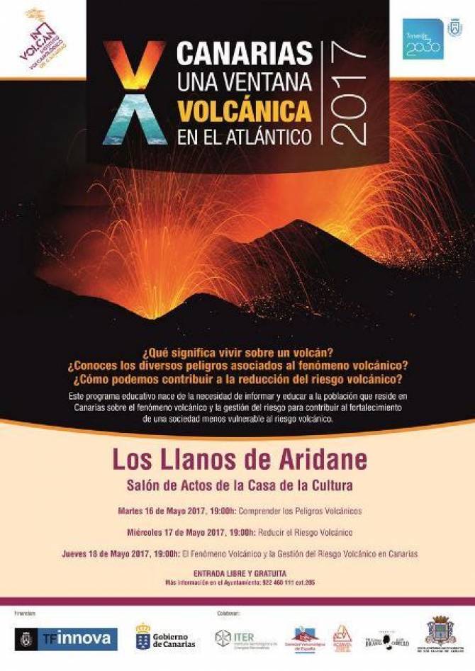 El Salón de Actos de la Casa de la Cultura de Los Llanos de Aridane acoge desde esta misma tarde y hasta el próximo jueves 18 de mayo el programa educativo “Canarias: una ventana volcánica en el Atlántico”. Una iniciativa del Instituto Volcanológico de Canarias (INVOLCAN), entidad dependiente del Cabildo de Tenerife, de carácter gratuito y abierta a la participación del público en general con especial atención a todas las personas ligadas al operativo de seguridad y emergencias, tanto profesionales como voluntarios, que residan en el municipio.