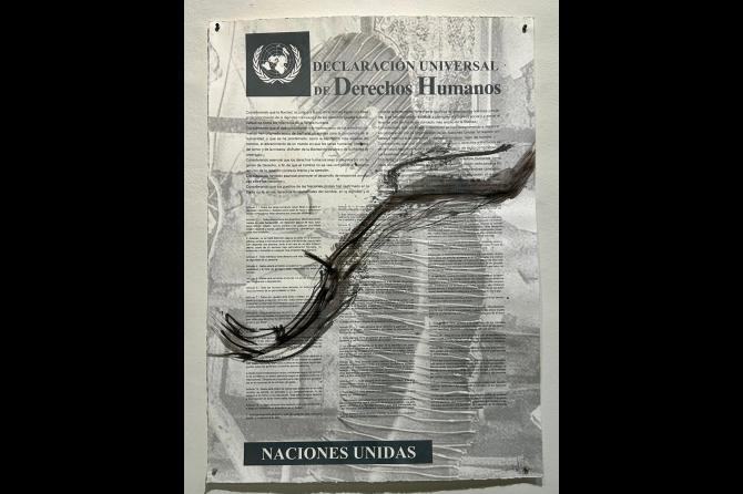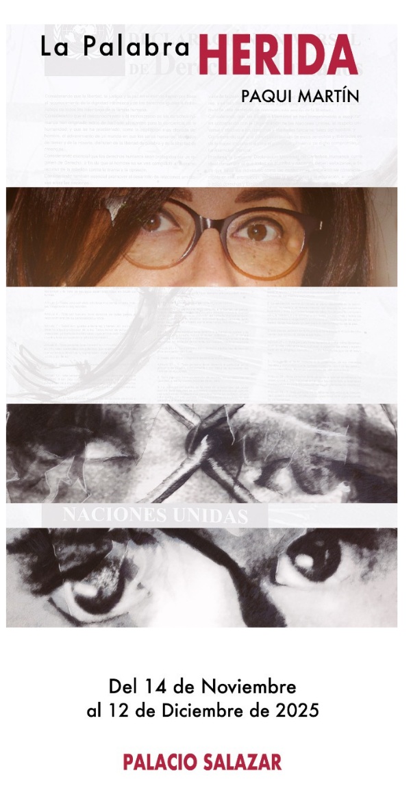 “La Palabra Herida” puede visitarse desde el 14 de noviembre hasta el 12 de diciembre. La muestra invita a mirar de frente la realidad de los conflictos bélicos actuales y a comprender su impacto en la vida de las personas. Reúne obras creadas desde 2014 a partir de fotografías históricas, imágenes de actualidad y técnicas mixtas como grabado, dibujo o impresión digital. Los rostros, miradas y escenas representadas transmiten dolor, miedo, refugio y esperanza. La Declaración Universal de los Derechos Humanos aparece como referencia simbólica a lo largo del recorrido.