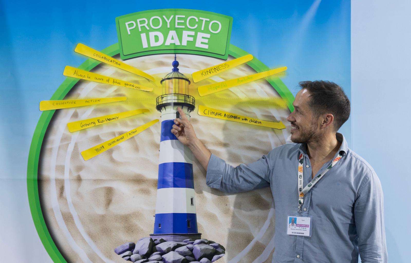 Como cierre del panel se desarrolló una breve dinámica participativa vinculada al "Faro IDAFE", símbolo del proyecto, en la que jóvenes de distintos países identificaron iniciativas y conceptos clave para orientar la acción climática en sus comunidades.