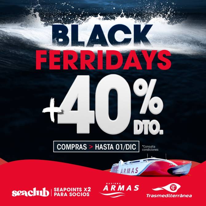 El Grupo Armas Trasmediterránea lanza los Black FerriDays desde el 25 de noviembre. A través de esta promoción, la naviera ofrece descuentos de más de un 40% en los billetes adquiridos hasta el 1 de diciembre de 2025 para hacer trayectos interinsulares. La compañía se suma así a las promociones por la celebración de la campaña comercial Black Friday con la que busca premiar la fidelidad de los usuarios que escogen viajar con Armas Trasmediterránea.