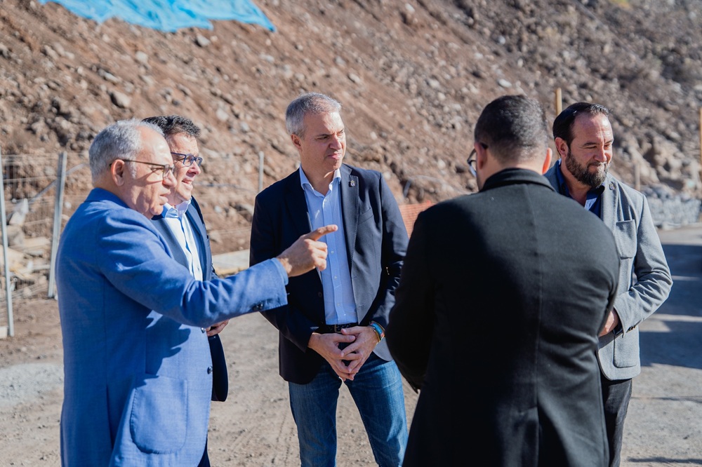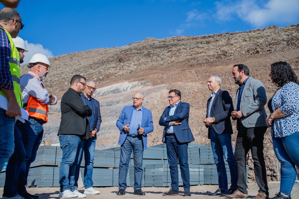 Acompañados por el presidente del Cabildo, Casimiro Curbelo, comprobaron antes el estado de las obras del depósito de Las Galanas, proyecto financiado por el FDCAN y el Gobierno de Canarias