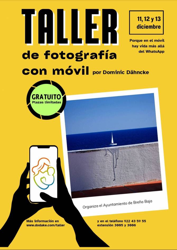 Bajo el lema “Porque en el móvil hay vida más allá del WhatsApp” del 11 al 13 de diciembre el Ayuntamiento de Breña Baja organiza un Taller de “Fotografía con Móvil” en el salón de plenos del Ayuntamiento de Breña Baja (San José), impartido por Dominic Dähncke.
