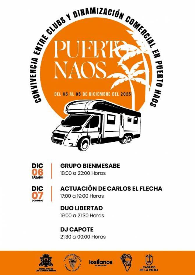El Ayuntamiento de Los Llanos de Aridane organiza una nueva convivencia de clubs de caravanas en Puerto Naos, acompañada de actuaciones musicales y acciones de dinamización comercial. Tendrá lugar del viernes, 5 de diciembre, al lunes, día 8.
