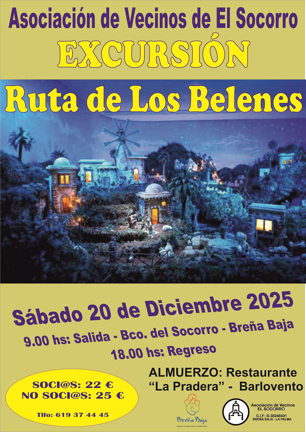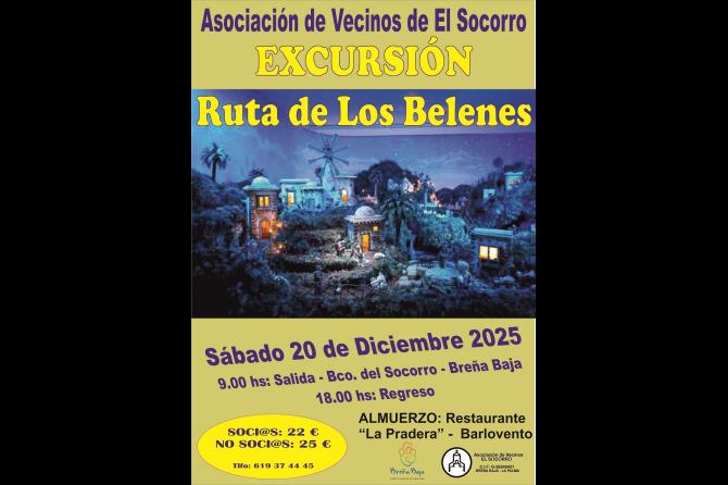 El fin de semana del 20 y 21 de diciembre las asociaciones de vecinos “El Socorro” y “Antomara” de San Antonio organizan sendas excursiones y visitas a Los Belenes de la isla. Cuentan con la colaboración del Ayuntamiento de Breña Baja.