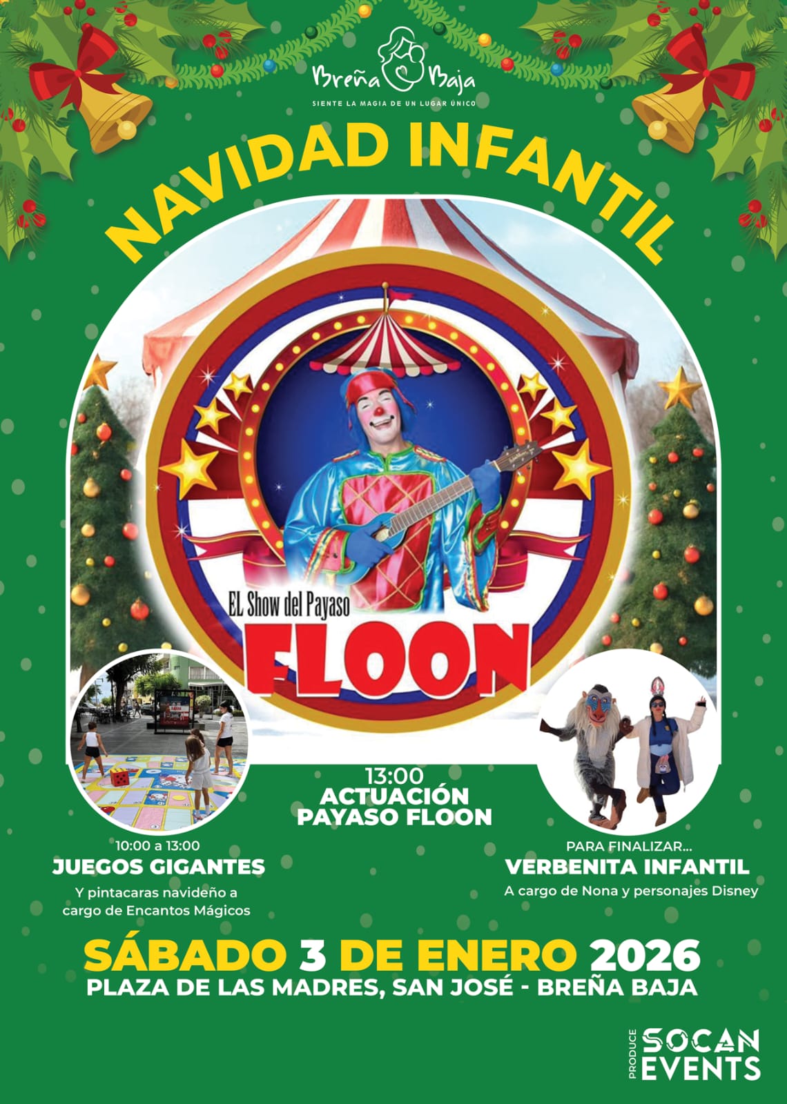 El sábado 3 de enero desde las 10 hs habrá varias actividades infantiles bajo la producción de Socan Events en la Plaza de Las Madres de San José y con motivo del Programa de Navidad del municipio que viene organizando el Ayuntamiento de Breña Baja.