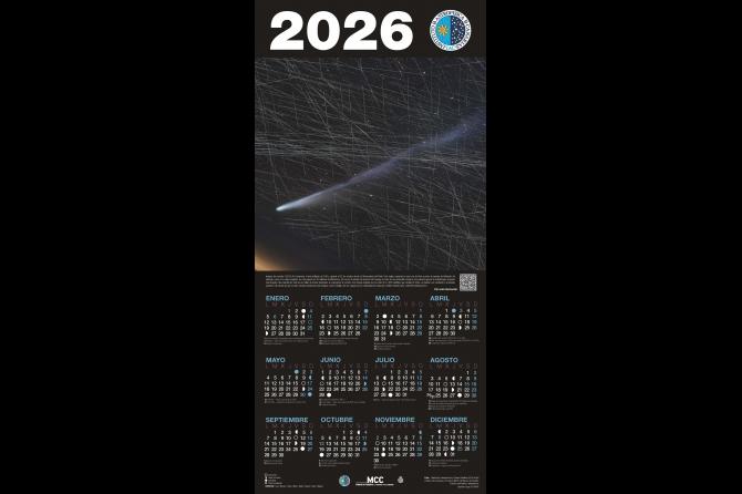 El Calendario 2026 del IAC está ilustrado con una fotografía del cometa C/2025 AB (Lemmon) captada desde el Observatorio del Teide, tomada por el astrofotógrafo Daniel López, de Cielos de Canarias; y el astrofísico y divulgador del IAC, Alfred Rosenberg.