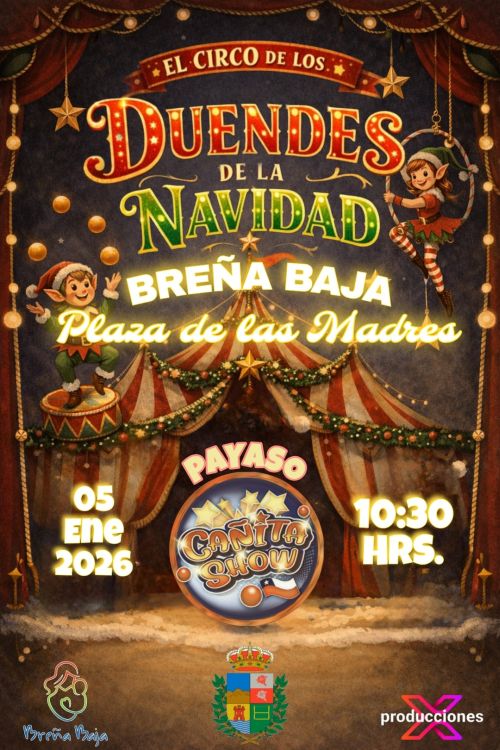 El lunes 5 de enero desde las 10.30 hs, tendrá lugar el Circo de Los Duendes de La Navidad en la Plaza de Las Madres de San José con la actuación estelar del “Payaso Cañita Show”, bajo la producción de Producciones X, y que organiza el Ayuntamiento de Breña Baja, en el marco del programa navideño del municipio.