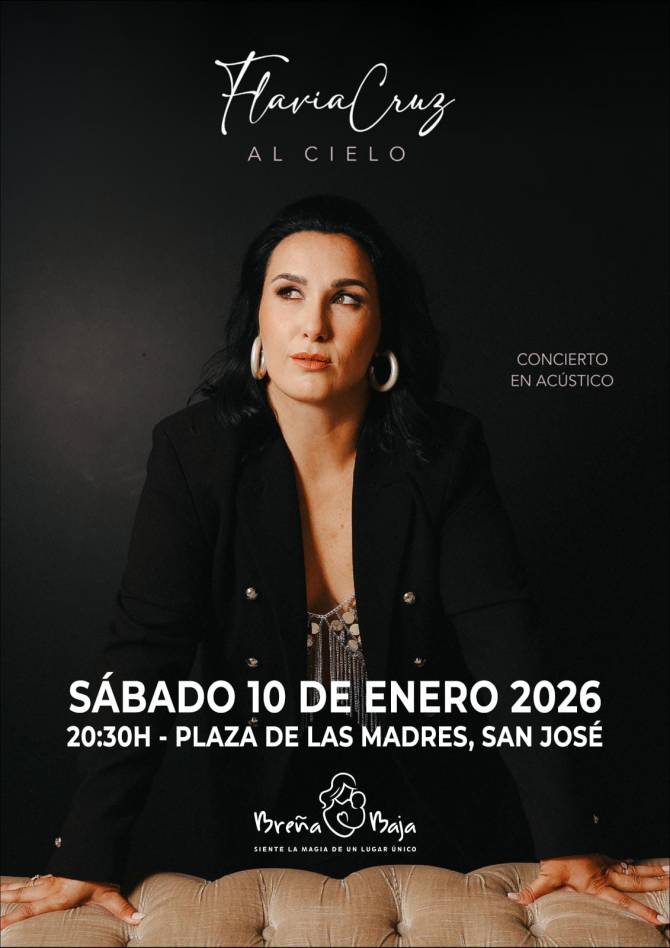 El sábado 10 de enero a las 20.30 hs Flavia Cruz presenta su concierto en acústico “Al Cielo” en la Plaza de Las Madres de San José con motivo del Programa de Navidad del municipio que viene organizando el Ayuntamiento de Breña Baja.