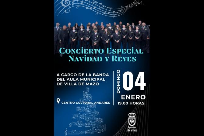 El Concierto Especial de Navidad y Reyes, que tendrá lugar el domingo 4 de enero a las 19:00 horas en el centro cultural Andares, contará con un repertorio diseñado para estas fiestas y estará a cargo de la banda del aula municipal de Villa de Mazo.