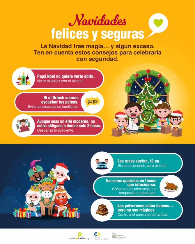 La Dirección General de Salud Pública del Servicio Canario de la Salud (SCS), adscrita a la Consejería de Sanidad, recuerda la importancia de mantener hábitos de vida saludables en esta época del año en la que predominan los excesos.
