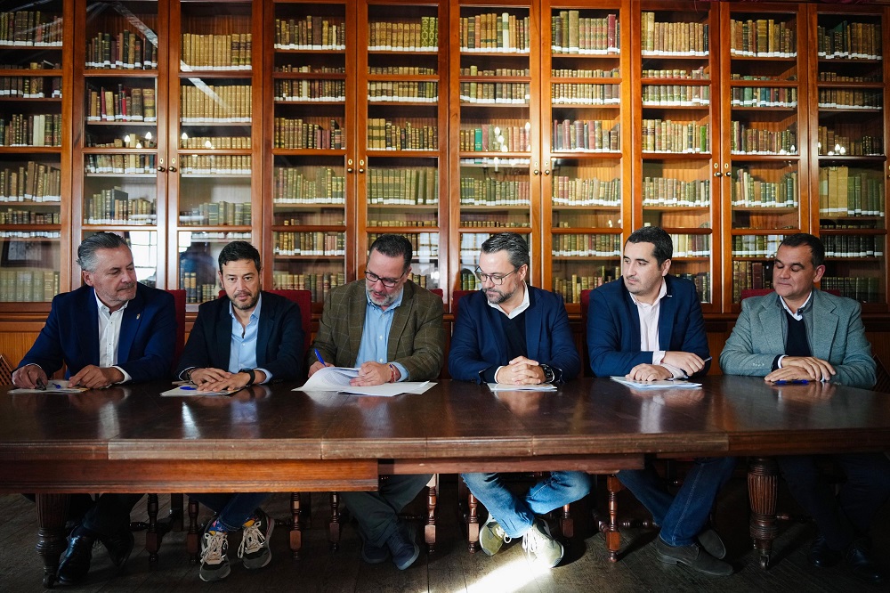El acto, celebrado en la sede de la Real Sociedad Cosmológica de La Palma, en la capital de la isla, contó con la participación del propio consejero de Educación y de los alcaldes de Santa Cruz de La Palma, Asier Antona; Barlovento, Jacob Qadri; Breña Baja, Borja Pérez, y Puntagorda, Vicente Rodríguez, y del alcalde accidental de la Villa de Mazo, Luis Cabrera, quienes estuvieron acompañados por el consejero de Transición Ecológica y Energía, Mariano H. Zapata así como por el director general de Infraestructuras y Equipamientos, Iván G. Carro, y la directora insular de Educación, Cristina Martín, entre otras autoridades.