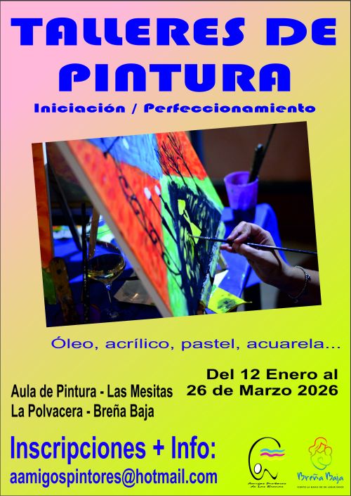 Desde el 12 de enero hasta el 26 de marzo, que tienen lugar en el Aula de Pintura de las Mesitas (La Polvacera). Para estos talleres se vienen contando con la colaboración del Ayuntamiento de Breña Baja.