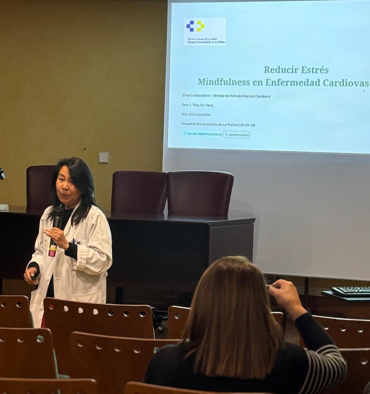 La actividad, organizada por la Unidad de Rehabilitación Cardíaca del centro hospitalario, ha estado impartida por la cardióloga Cira Lara Kim y la médica rehabilitadora I-Ting Su Yang. Se trata de la segunda edición de estas charlas, que en esta ocasión han incorporado como novedad una ponencia sobre pautas para reducir el estrés y potenciar la técnica del mindfulness en pacientes con enfermedad cardiovascular.
