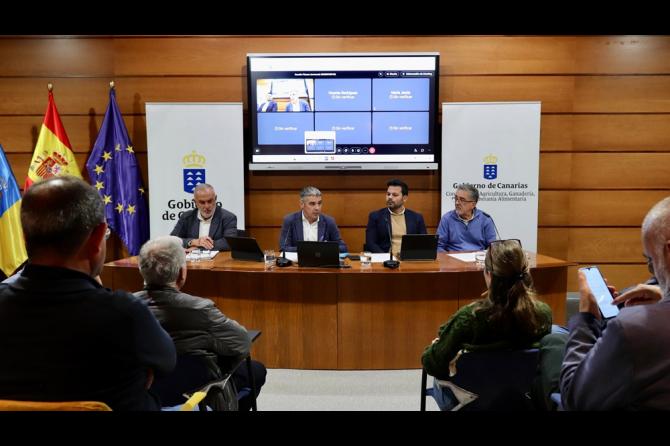 El consejero de Agricultura, Ganadería, Pesca y Soberanía del Gobierno de Canarias, Narvay Quintero, presidió hoy martes, 27 de enero, la reunión de seguimiento de las actuaciones para la erradicación de la filoxera en la que se presentaron los nuevos protocolos para impedir la propagación del pulgón, especialmente adaptados al próximo periodo de poda, y se repasaron las acciones desarrolladas desde su detección, en julio de 2025, hasta la actualidad.