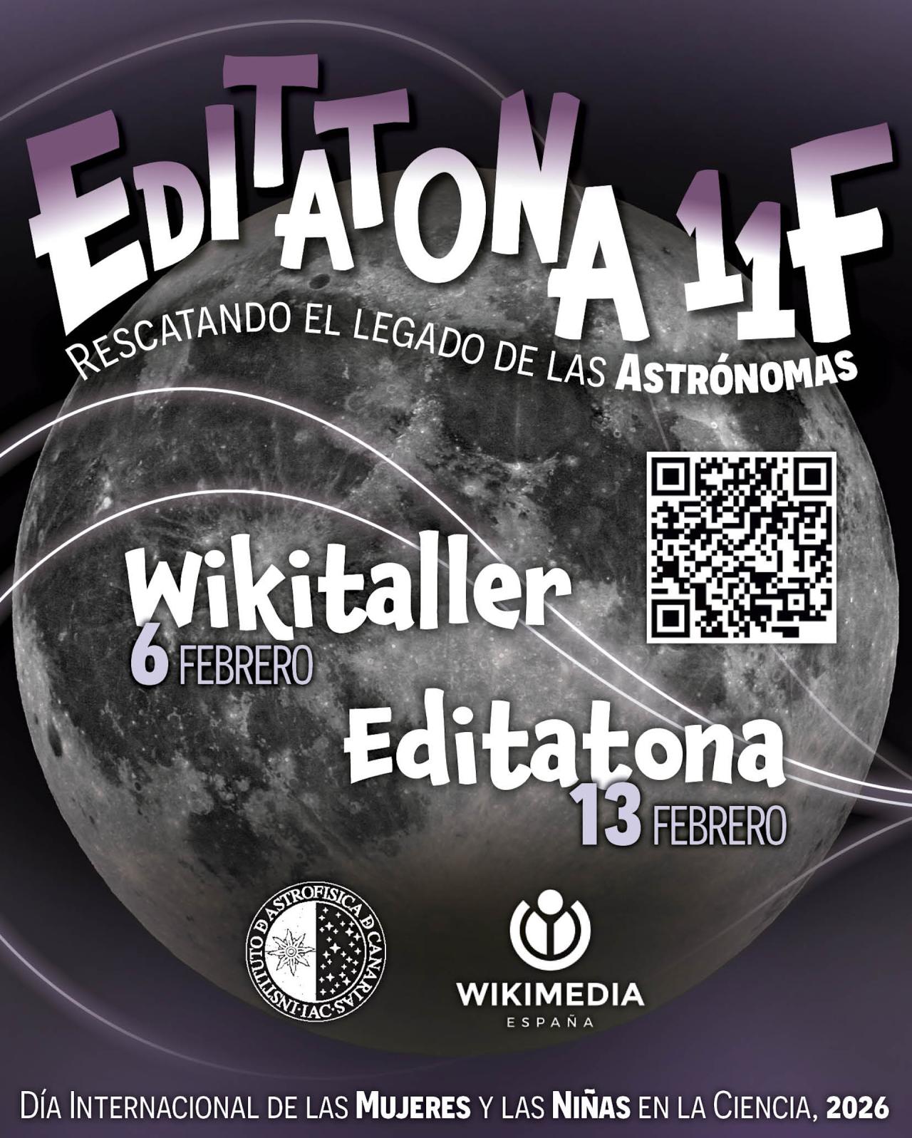 Ambas actividades se desarrollarán de forma presencial en el Aula de la Sede Central del IAC en La Laguna y también podrán seguirse y realizarse en modalidad online a través de la plataforma Zoom, con el fin de facilitar la participación desde cualquier lugar. La editatona contará además con dos turnos de edición, uno de mañana y otro de tarde, permitiendo a las personas inscritas elegir el horario que mejor se adapte a su disponibilidad o participar en ambos.