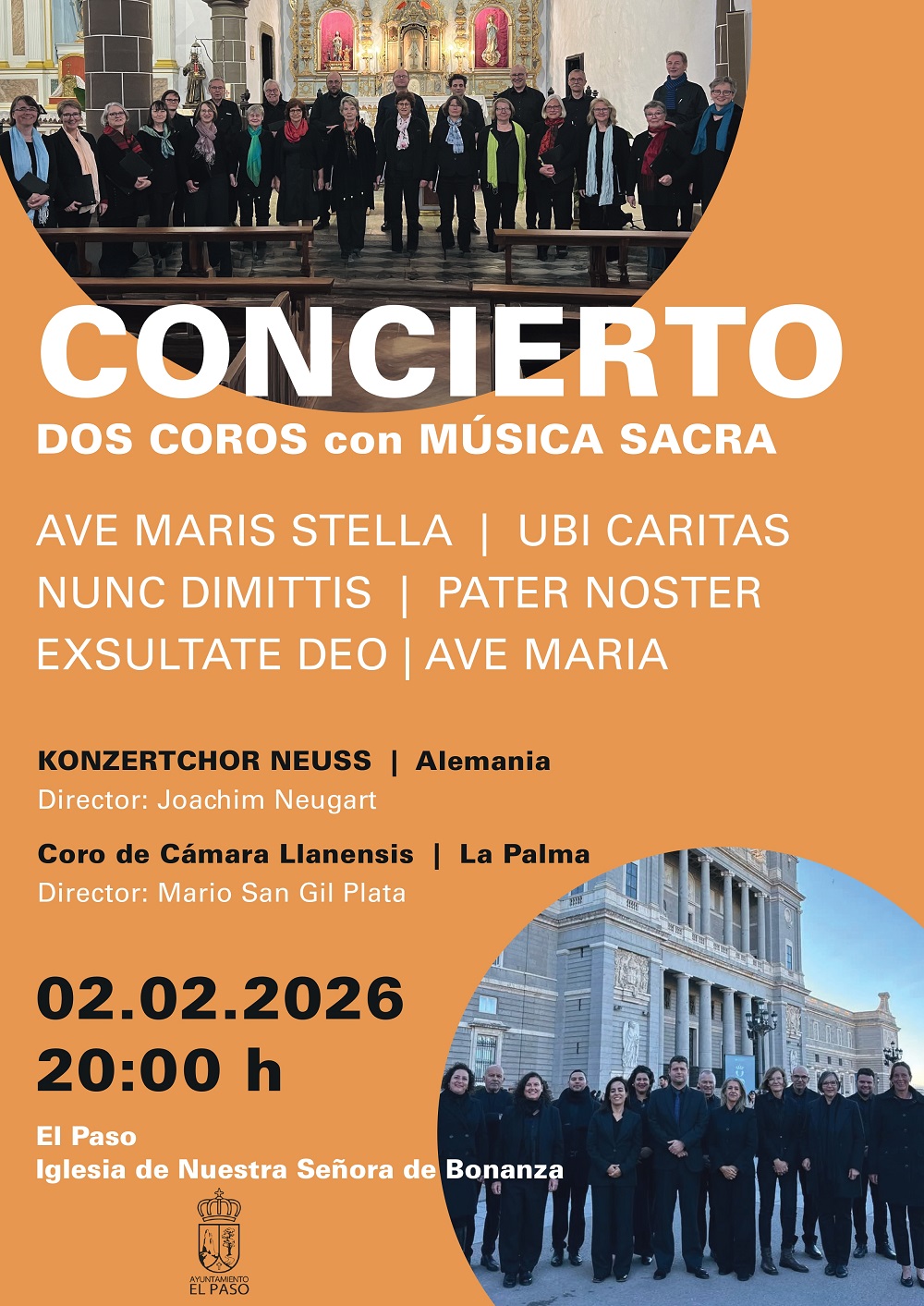 el éxito de este formato el pasado año, nos complace recibir nuevamente este concierto a dos coros. Desde El Paso reafirmamos nuestra apuesta por la cultura en todas sus formas y seguimos respaldando eventos que acercan la música de cámara a la ciudadanía. Es un orgullo contar con estas dos agrupaciones y sus directores, cuya excelencia garantizará un encuentro inolvidable. Invitamos a vecinos y visitantes a no perdérselo”.