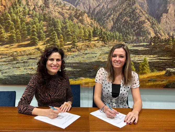 La consejera de Promoción Económica del Cabildo de La Palma y consejera delegada de SODEPAL, Miriam Perestelo, y la directora de la Escuela de Arte Manolo Blahnik, Mónica Reverón, han suscrito un nuevo convenio de colaboración destinado a fomentar la formación, capacitación y proyección profesional del alumnado del centro.