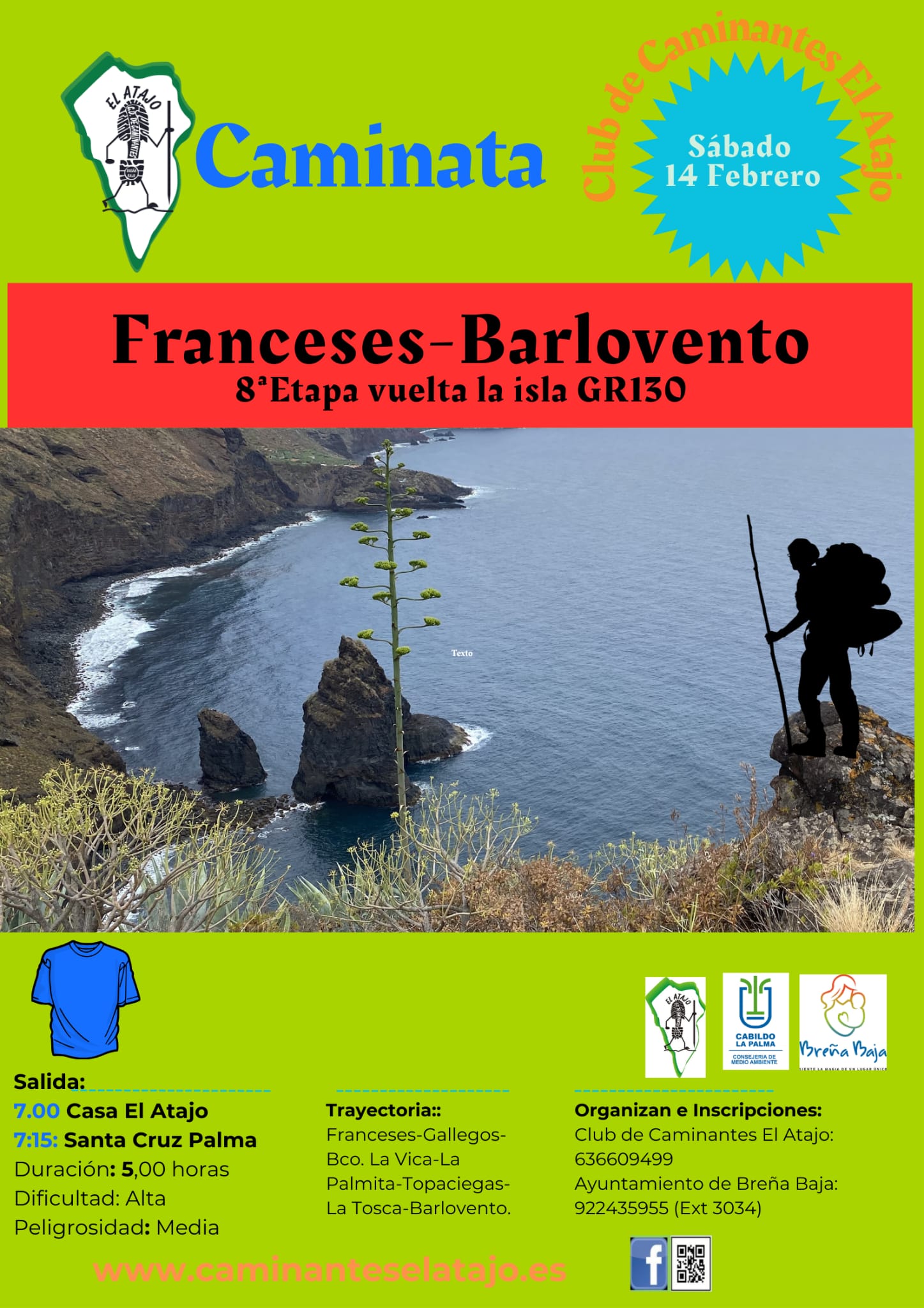 El sábado 14 de febrero, el C. D. de Caminantes "El Atajo" y la Concejalía de Deportes del Ayuntamiento de Breña Baja organizan, dentro del Programa de Senderismo de Breña Baja, la caminata nº 975: "Franceses (Villa de Garafía)".
