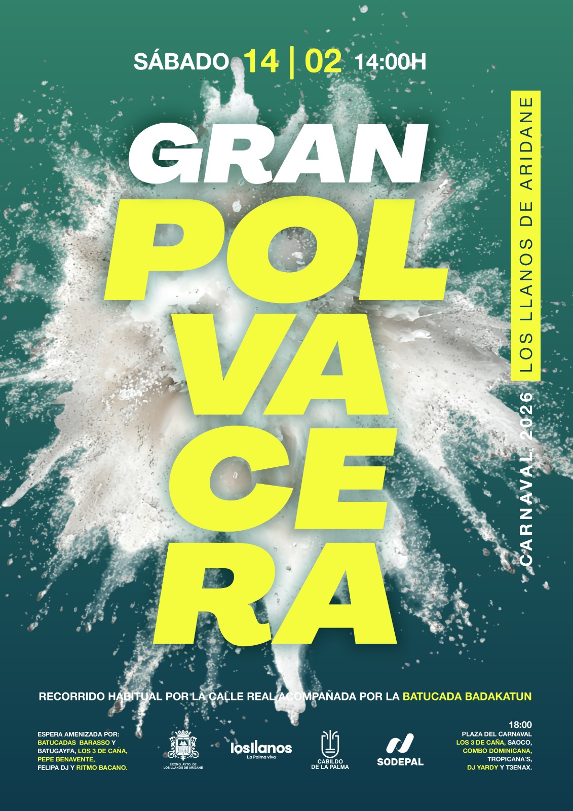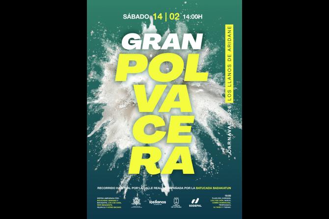 El Ayuntamiento de Los Llanos de Aridane celebra este sábado, 14 de febrero, la Gran Polvacera, uno de los actos de referencia del Carnaval y una de las citas más esperadas del calendario festivo del municipio.