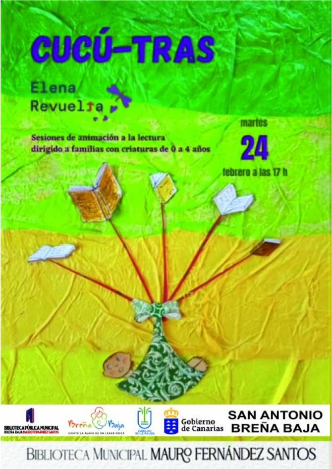 La Concejalía de Cultura del Ayuntamiento de Breña Baja sigue promocionando actividades en la Biblioteca Pública Municipal de Breña Baja "Mauro Fernández Santos" (San Antonio), para el martes 24 de febrero. Dinamizados por Elena Revuelta. Con la colaboración del Cabildo Insular de La Palma y Gobierno de Canarias.