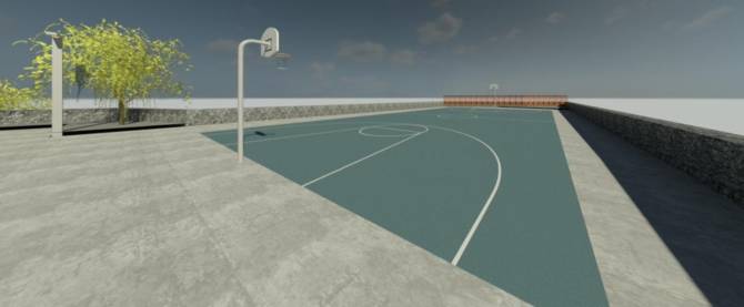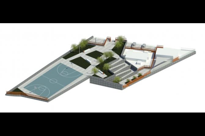 El área deportiva, que ocupará, 768,86 metros cuadrados, albergará una cancha polivalente destinada a la práctica de minibasket y fútbol, fomentando la actividad física y el uso comunitario del espacio. El proyecto prevé la habilitación de un parking con seis plazas de estacionamiento, ubicada junto a la vía principal y próxima a la estación transformadora existente, facilitando la accesibilidad al recinto.