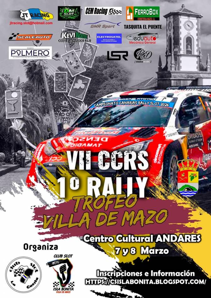 Villa de Mazo volverá a ser escenario del Rally Slot con la celebración de la primera prueba del VII Campeonato de Canarias 2026, organizada por el Club Slot Isla Bonita en colaboración con el Ayuntamiento. Tras la buena acogida de la pasada temporada, el municipio repite como sede de esta cita regional, que tendrá lugar los días 7 y 8 de marzo en el Centro Cultural Andares.