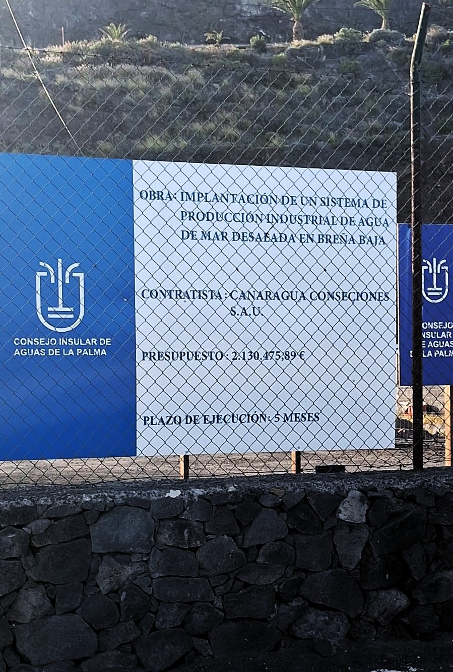 El agua que se desale en Breña Baja, hasta 2.500 m3 diarios, será impulsada hasta el canal LP-1, a unos 500 metros de altitud, lo que incrementará aún más el gasto energético. Al coste de la instalación, 2.130.000 euros, habrá que agregar también el de otras obras accesorias, como las conexiones a la red hidráulica insular.