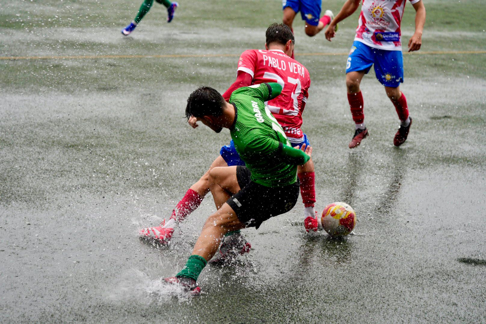 El inicio ya dejó claro el planteamiento. Con el balón frenado por el agua y sin posibilidad de elaborar, ambos equipos apostaron por envíos largos y segundas jugadas. En ese contexto, el Atlético Paso avisó pronto con dos llegadas de Álvaro Iglesias que rozaron el gol, mientras que, por parte del San Bartolomé, Alejandro Vera intentó responder con un disparo raso desde la frontal en la que sería la ocasión más clara del encuentro para los visitantes.