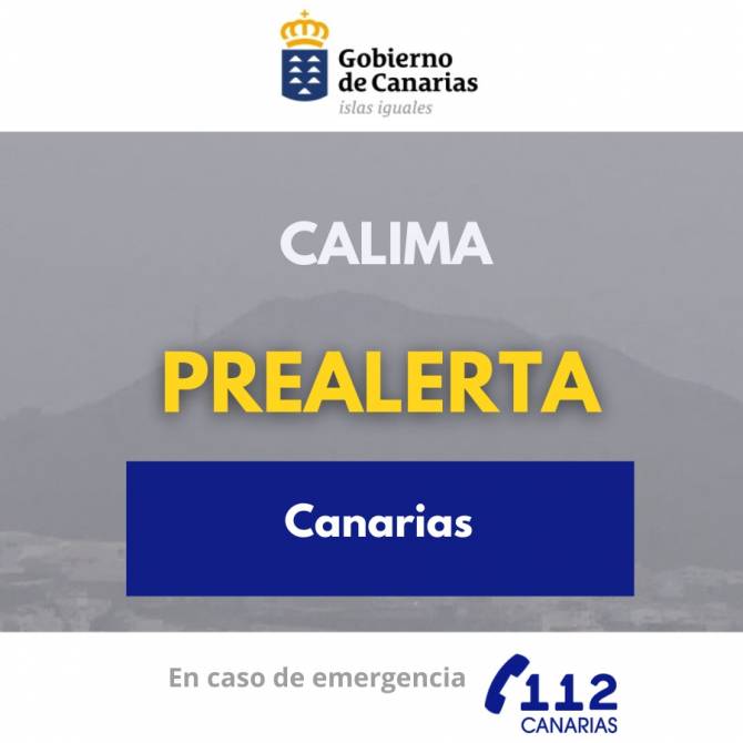 El Gobierno de Canarias, a través de la Dirección General de Emergencias, declara la situación de prealerta por calima en todas las islas a partir de las 12:00 horas de mañana, lunes 30 de marzo. Esta decisión se toma teniendo en cuenta la información facilitada por la Agencia Estatal de Meteorología y otras fuentes disponibles, y en aplicación del Plan Específico de Emergencias de Canarias por Riesgos de Fenómenos Meteorológicos Adversos (PEFMA).