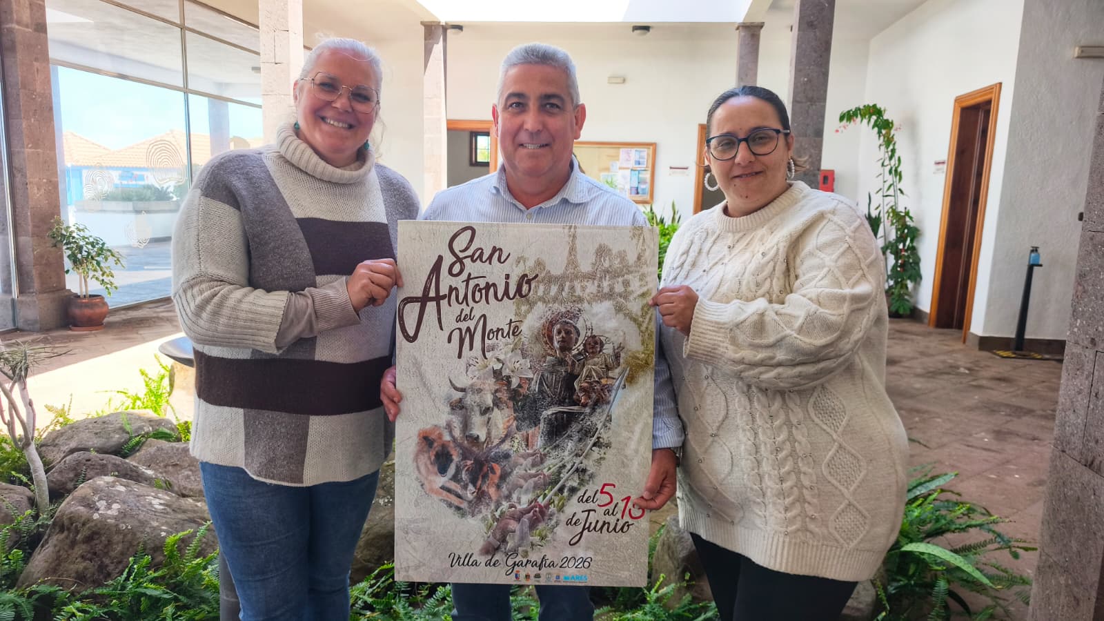 El Ayuntamiento de la Villa de Garafía presenta oficialmente el cartel anunciador de las fiestas en honor a San Antonio del Monte, que este año se celebrarán entre el 5 y el 13 de junio. Por segunda edición consecutiva, la identidad gráfica de esta histórica festividad lleva la firma de la artista barloventera Davinia Rodríguez Brito.