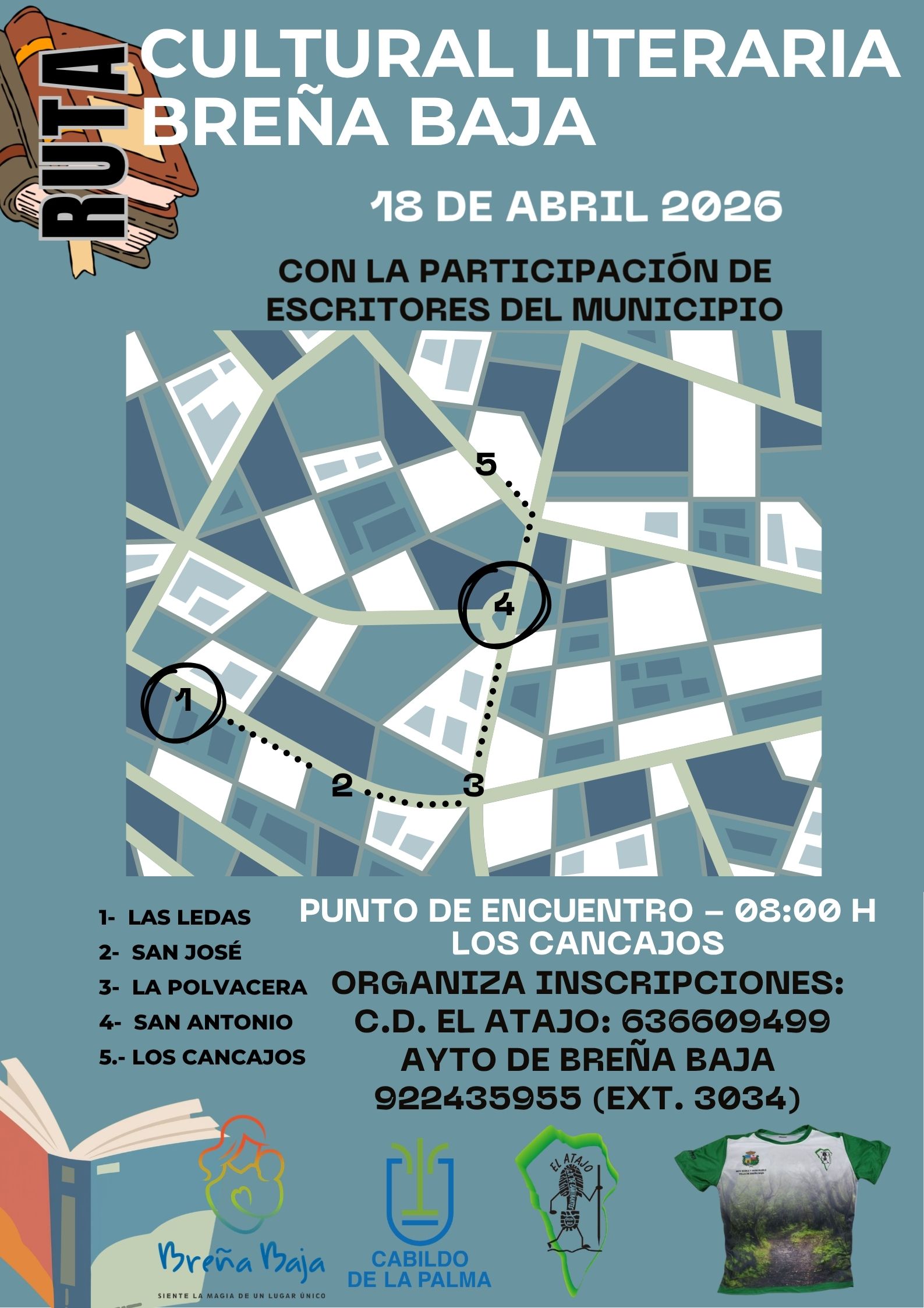 La ruta pretende hacer un recorrido por algunos de los escritores/creadores literarios procedentes o vinculados al municipio de Breña Baja, conociendo su biografía y obra editada. Se trata de recorrer los diversos barrios del municipio para visitar a estos autores. De esta manera esta previsto realizar las siguientes paradas: