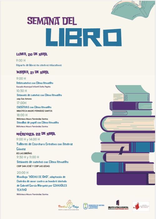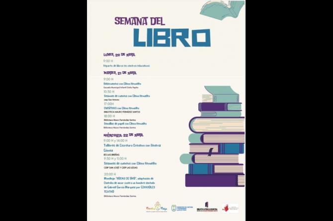 La agenda comenzará el lunes 20 con el reparto de libros en los centros educativos. El martes 21 y miércoles 22, la narradora Elena Revuelta será la encargada de acercar el mundo de los cuentos a los más pequeños en la Escuela Doña Pepita y los CEIP San Antonio, San José y Las Ledas.