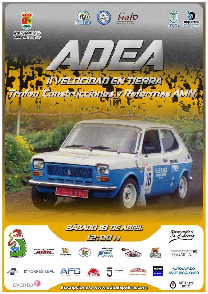 El Ayuntamiento de Villa de Mazo colabora en la celebración de la segunda edición de la Velocidad en Tierra ADEA 'Trofeo Construcciones y Reformas AMN', una cita que se disputa este sábado, 18 de abril, a partir de las 12:00 horas en el Circuito Llano del Calvario. La prueba reúne a 34 equipos inscritos y se consolida como una de las citas destacadas del calendario automovilístico insular y provincial.