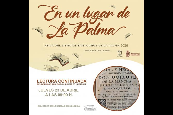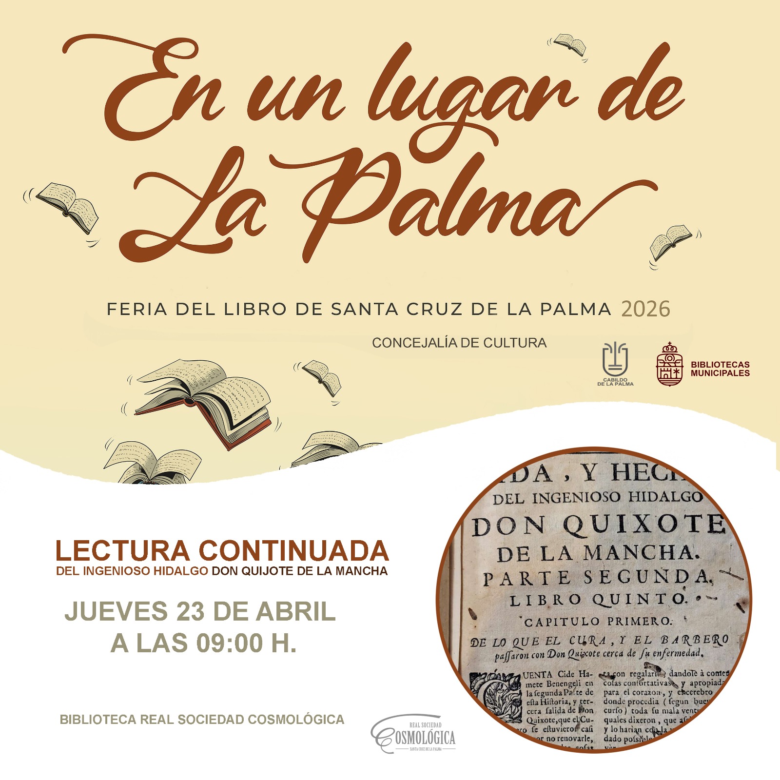 El Ayuntamiento de Santa Cruz de La Palma celebra una nueva edición del Día del Libro con una completa programación enmarcada en la Feria del Libro 2026, que se desarrollará del 20 al 26 de abril en distintos espacios de la capital, como la calle O'Daly, la plaza de España, el Teatro Circo de Marte, el Teatro Chico, la Real Sociedad Cosmológica y el Museo de Arte Contemporáneo. Esta iniciativa cuenta con el respaldo del Cabildo de La Palma.