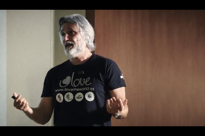Escalero expuso su propia experiencia en la Isla Bonita y algunas de las incontables y emotivas historias que conoció directamente de los damnificados, a quienes ayudó tomando fotos aéreas en 360 grados de manera altruista -un servicio que no daba la Administración pública- para cientos de familias, con quienes estableció unos vínculos que aún hoy permanecen.