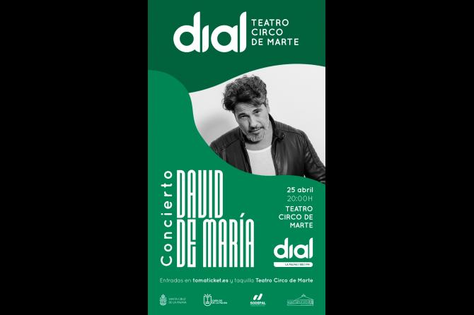 El Ayuntamiento de Santa Cruz de La Palma ultima los preparativos para el concierto de David DeMaría, que tendrá lugar el próximo sábado 25 de abril, a las 20:00 horas, en el Teatro Circo de Marte, en el marco de la segunda edición del Escenario Dial.