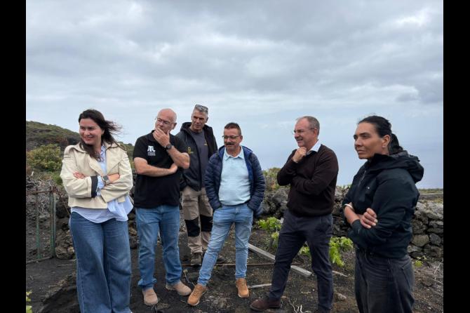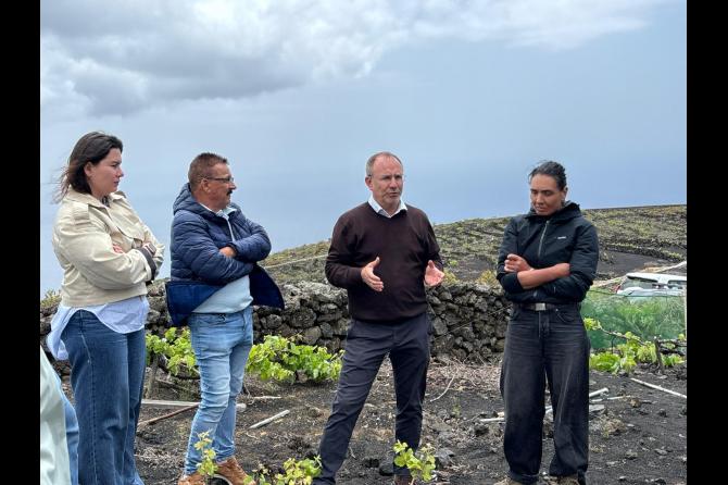 El presidente insular, Sergio Rodríguez, visitó la zona junto a la consejera insular de Medio Ambiente, Mónica Gómez, y el alcalde de Fuencaliente, Gregorio Alonso, junto a personal técnico del Cabildo y la Reserva de la Biosfera, y varios viticultores de la zona.