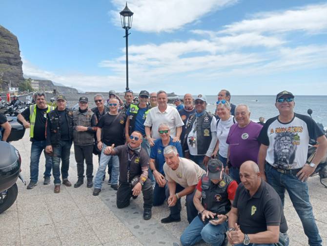 El alcalde de Tazacorte, David Ruiz Álvarez, ha recibido oficialmente este viernes a una comitiva de 165 moteros en un encuentro que consolida a la Villa y Puerto como un punto de referencia para el turismo activo y el mundo del motor en Canarias.
