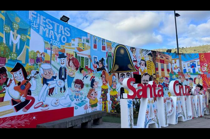 El espacio ha sido intervenido con un diseño del artista Víctor Jaubert, quien ha plasmado su característico estilo de dibujo —colorido, detallista y con un marcado sello identitario— en una propuesta visual que rinde homenaje a esta tradición tan arraigada en Santa Cruz de La Palma. La obra incorpora diferentes referencias a la Cruz y a los elementos más representativos de estas fiestas, poniendo en valor su significado histórico, cultural y simbólico para el municipio.